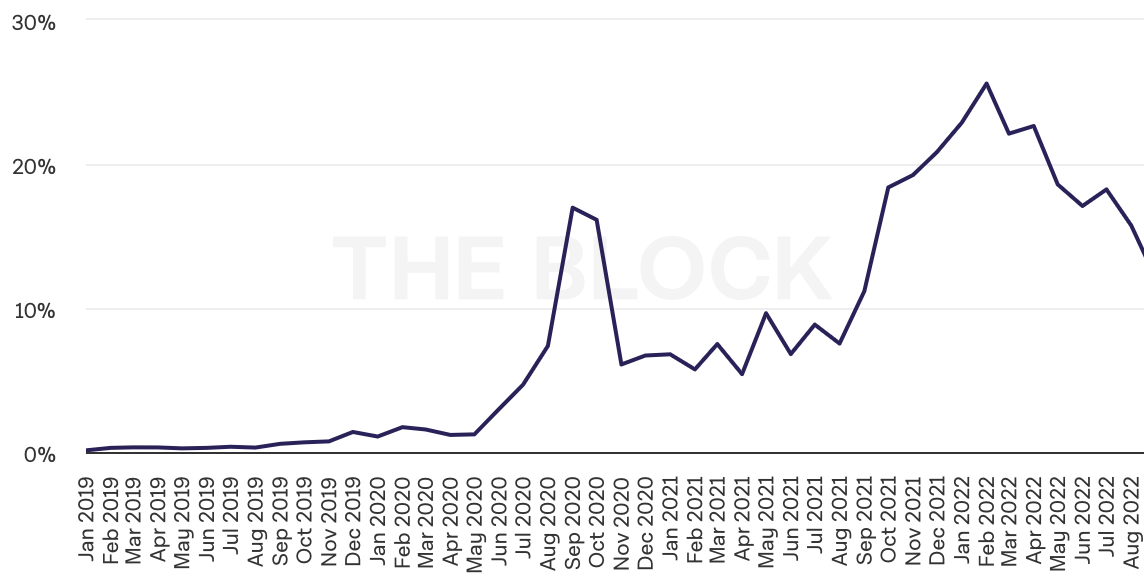 DEX to CEX spot trading volume (%).