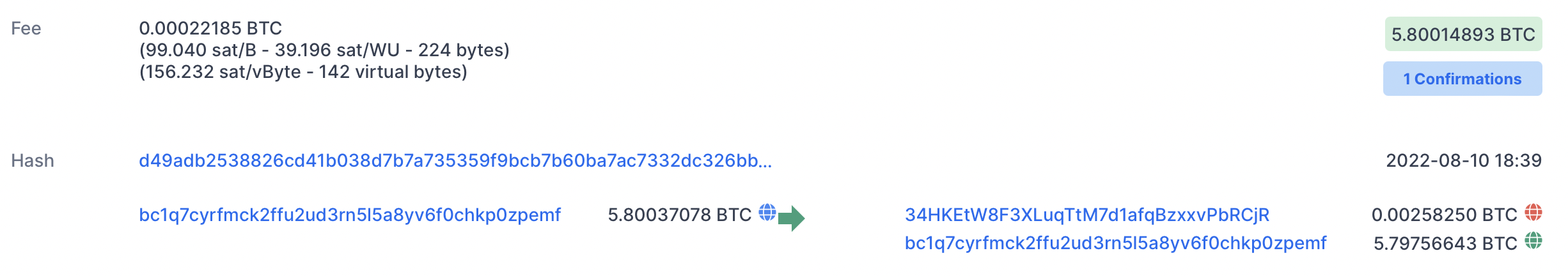 A real bitcoin transaction. Source: Blockchain.com, accessed on 2022-08-17.
